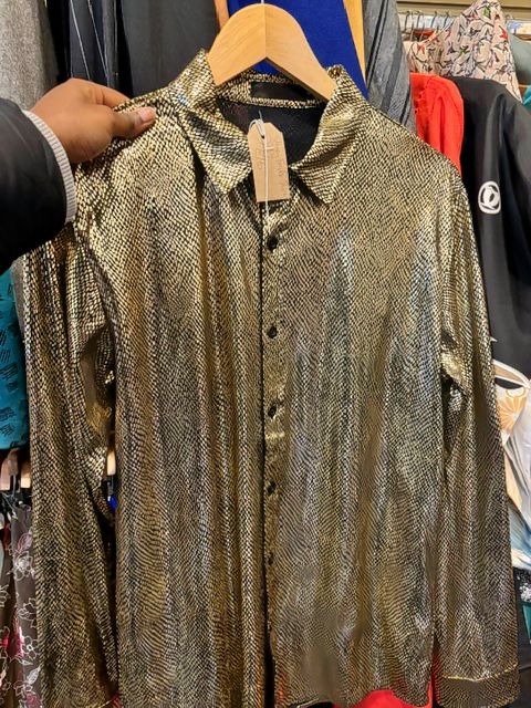 This glittery blouse shirt is believed to be from the disco era, the late 1960s- The Yesterday Society Vintage