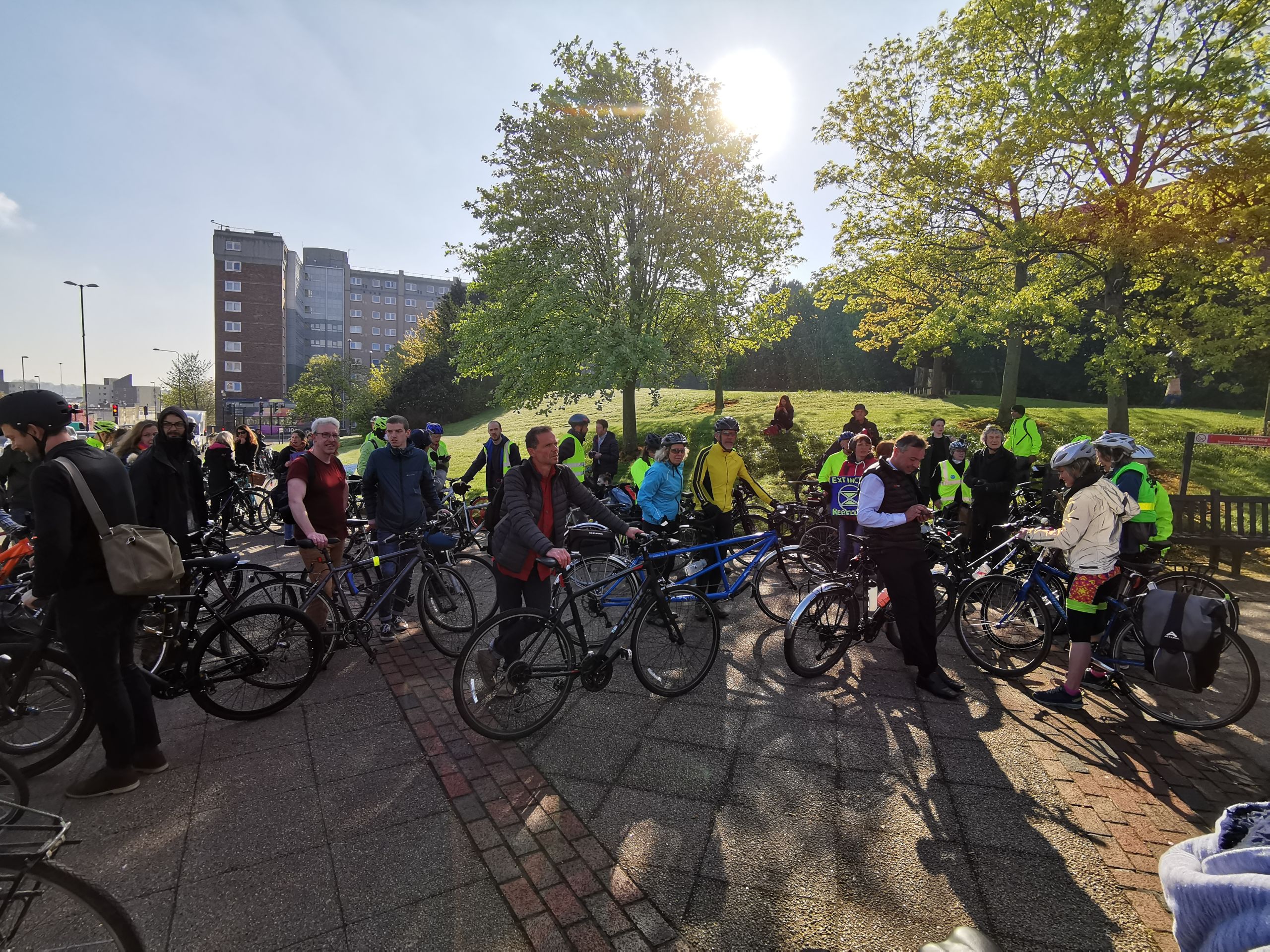 The 'Go Slow' cycle featured over 100 people either on bikes or walking alongside. The slow movement of the march was intended to slow down the traffic and to attract media and public attention. The group met outside Central Station at 7am before doing a few laps around the city to gather momentum, those on foot held placards and played music to cheer on their cycling comrades. The rally then made their way to Gateshead Civic Centre via the Tyne Bridge, everyone in bright spirits despite the early start. It was there that the group handed their demands to the council and put pressure on them to act now on climate change