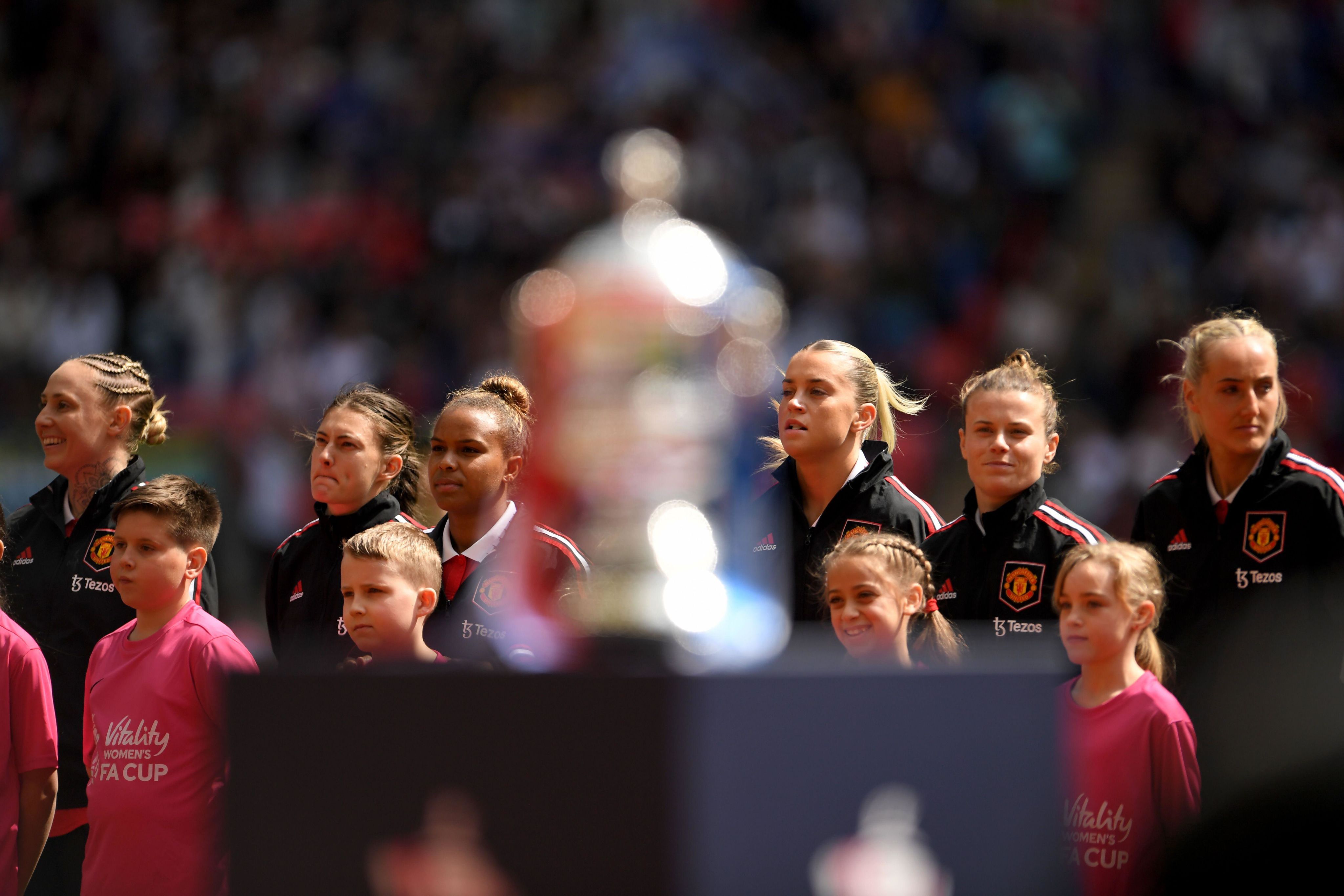 London, UK. 14th May, 2023. Manchester United Women line up before kick off during the The Women's FA Cup match at Wembley Stadium, London. Picture credit: Gary Oakley/Sportimage Credit: Sportimage Ltd/Alamy Live News