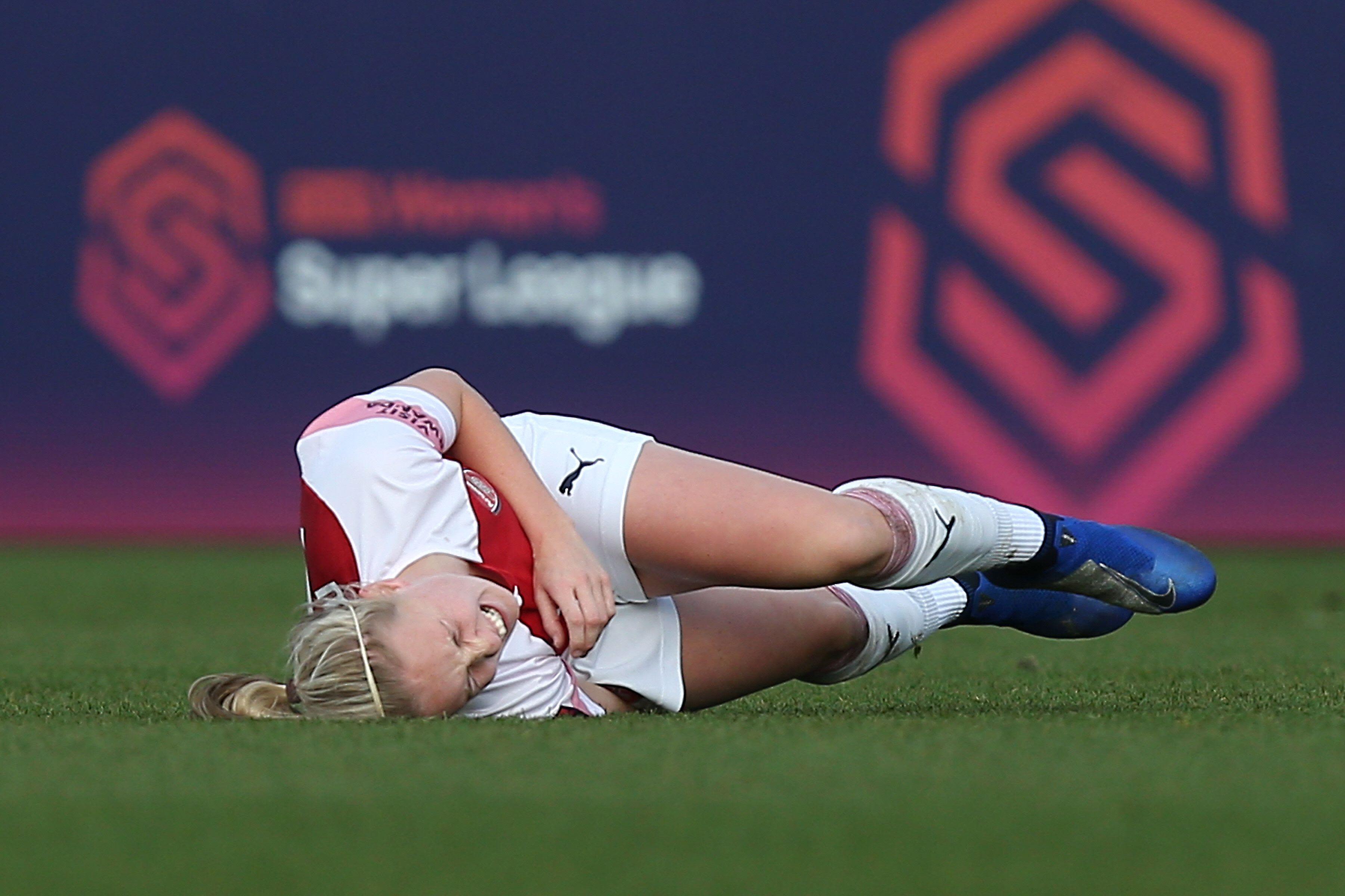 Injury concern for Beth Mead of Arsenal during Arsenal Women vs Chelsea Women, FA Women's Super League Football at Meadow Park on 13th January 2019