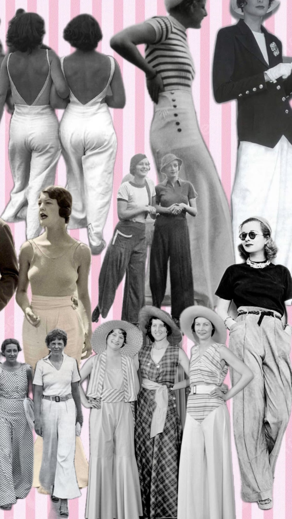 The most fashionable young women started to wear trousers for leisure pursuits, particularly on the beach, or for early evening wear at home, the latter in the form of luxurious, Chinese-style, printed silk pajama suits.” wrote historians Valerie Mendes and Amy de la Haye in their book, 20th Century Fashion (Bain, 2019).