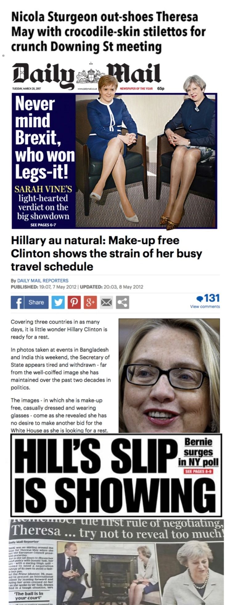 Women especially in the corporate and political world are still held to the standards of an unspoken dress code. Emily Parkhurst, CEO and Founder of Formidable Inc a media and membership company aimed at high level women stated “If I had a lot of meetings with men, I would wear more conservative clothing to ensure I wasn't perceived as unprofessional, and when I was meeting with a lot of women, I'd think more about the shoes and jewelry I was wearing. Men rarely notice your shoes, but women often do. Women must decide if they're making a "fashion statement" or trying not to be noticed, or something in between.... Men can wear the same dark blue suit every day of their lives and if they change their shirt and tie, no one will ever notice.”